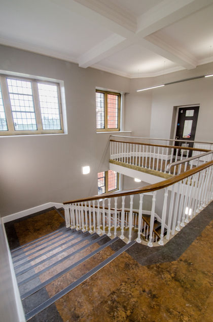 The scheme included a full thermal upgrade, adjusted levels of main approach, upgrade of the entrance doors, lobby and staircase, addition of high quality lighting and a palette of heritage wall colours in order to identify key elements of structure and contemporary floor finishes reflecting the building heritage.